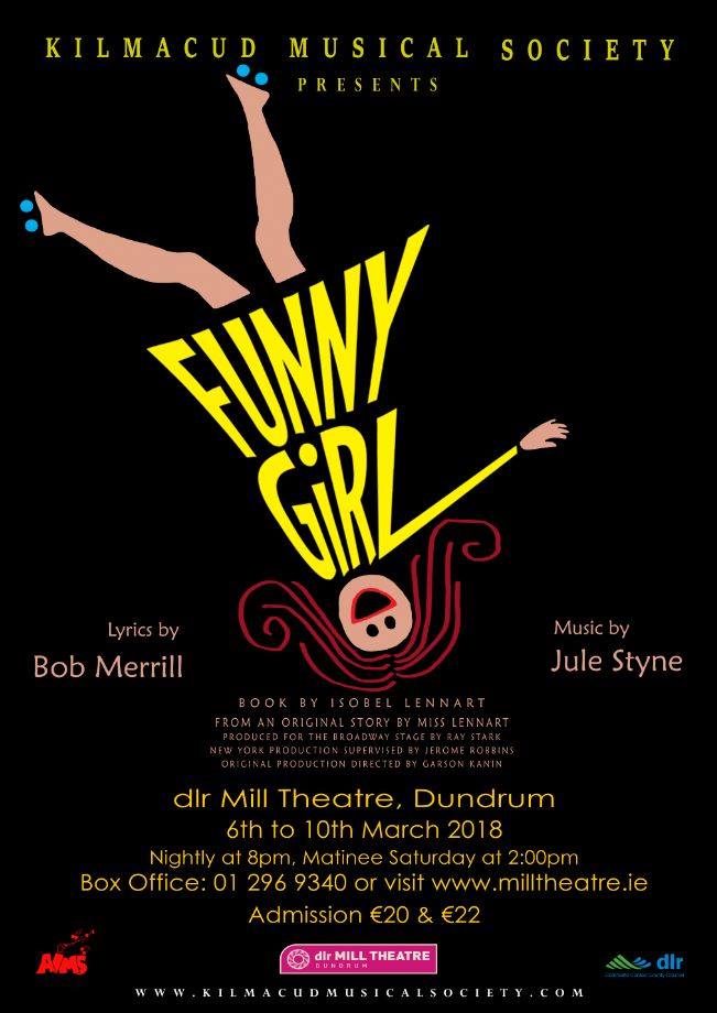 It less than one month until the members of Kilmacud Musical Society take to the stage with our next production. Rehearsals are well under way and we are excited to be bringing Funny Girl to the stage of dlr Mill Theatre from 06-10 March 2018. Tickets are now on sale from the theatre box office on 01 296 9340 or online from www.milltheatre.ie/events/funny-girl